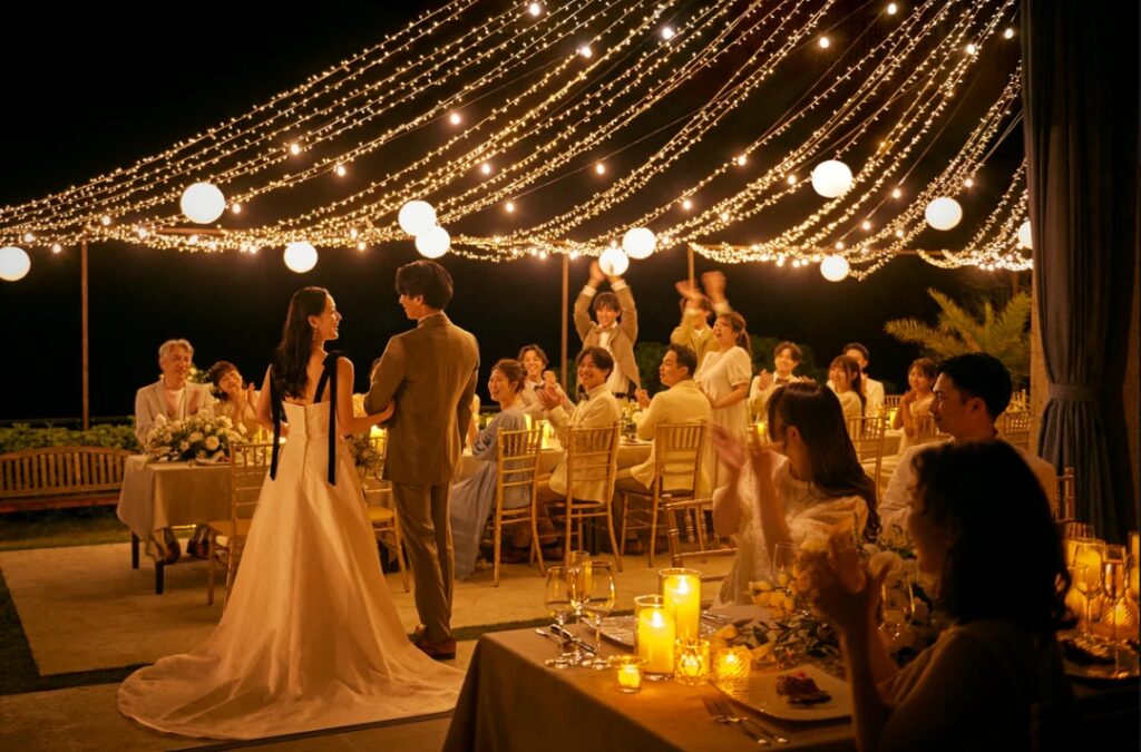 沖繩西海岸的夕陽,是許多人心中最難忘的畫面。當婚禮結束後,天空逐漸染上金黃與橘紅,新人與親友舉杯的瞬間,將愛情的喜悅延伸至派對與晚宴之中。無論是與至親共享一場溫馨的海邊晚餐,或是舉辦一場戶外花園派對,都能讓婚禮不僅止於形式,而是一場包含誓言、旅行、情感交流的完整旅程。這樣的安排,讓每一位參與者都能帶著難以忘懷的幸福回憶離開。