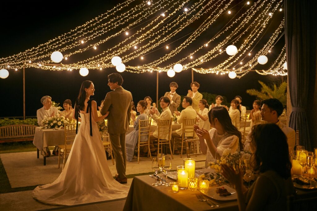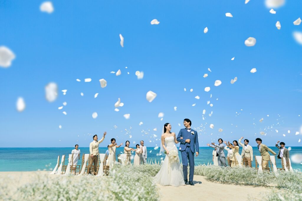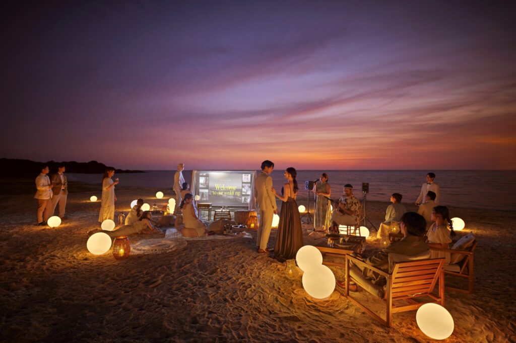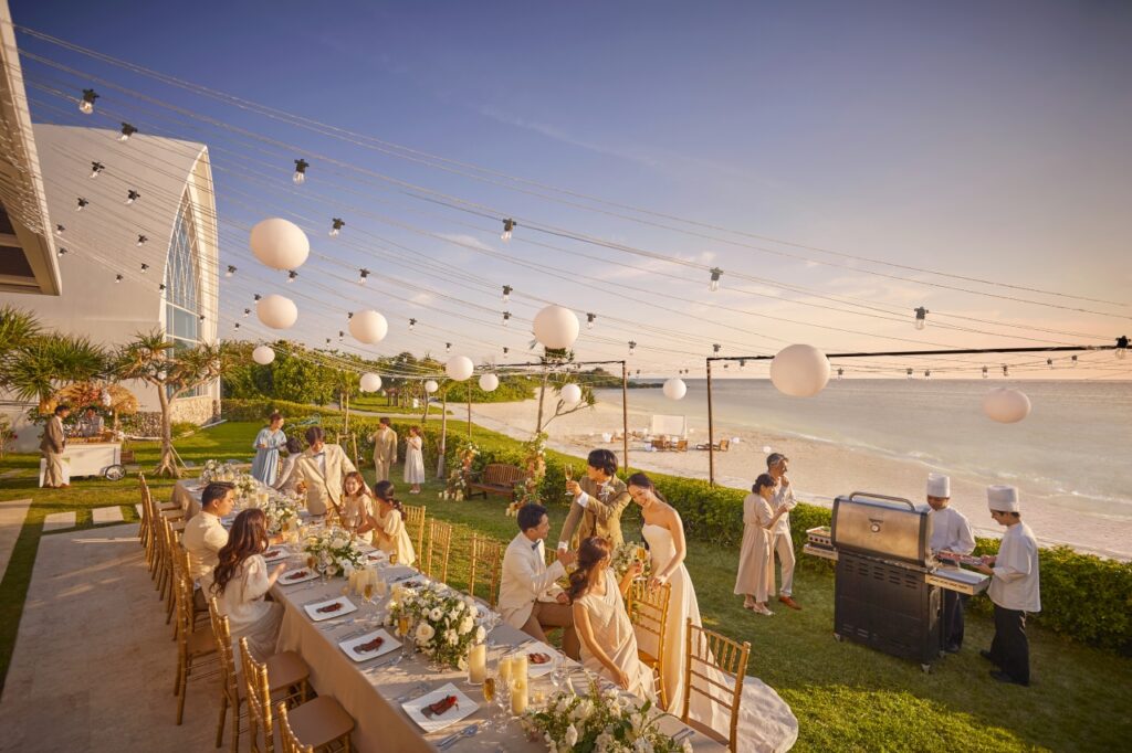 沖繩西海岸的夕陽,是許多人心中最難忘的畫面。當婚禮結束後,天空逐漸染上金黃與橘紅,新人與親友舉杯的瞬間,將愛情的喜悅延伸至派對與晚宴之中。無論是與至親共享一場溫馨的海邊晚餐,或是舉辦一場戶外花園派對,都能讓婚禮不僅止於形式,而是一場包含誓言、旅行、情感交流的完整旅程。這樣的安排,讓每一位參與者都能帶著難以忘懷的幸福回憶離開。