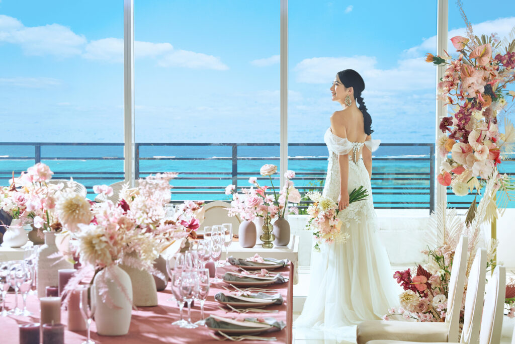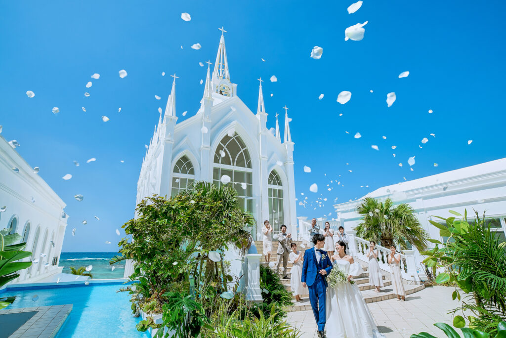 克麗絲蒂教堂位於沖繩本島中部的讀谷村,不僅有著未經雕琢的海岸線,更擁有濃厚的沖繩在地文化與人情溫暖。以其優雅夢幻的純白尖塔外觀,彷彿漂浮於海面之上的宏偉教堂,實現了新人對極上奢華的追求。在廣闊的藍天與海面交織下,夢幻氛圍與閃耀光芒將永遠烙印在心中,見證永恆的愛戀。